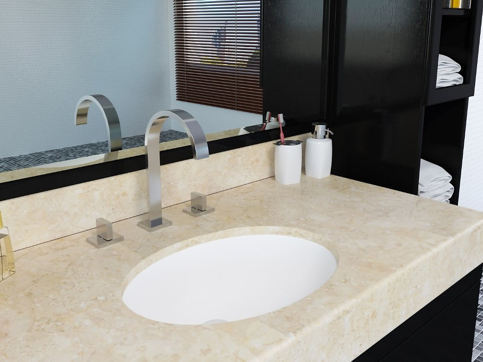 As cubas de embutir possuem designs simples, menos invasivos, e são uma ótima opção por serem mais acessíveis. São fixadas abaixo das bordas do tampo, o que faz com que a bancada deva ter profundidade o bastante para comportá-las.